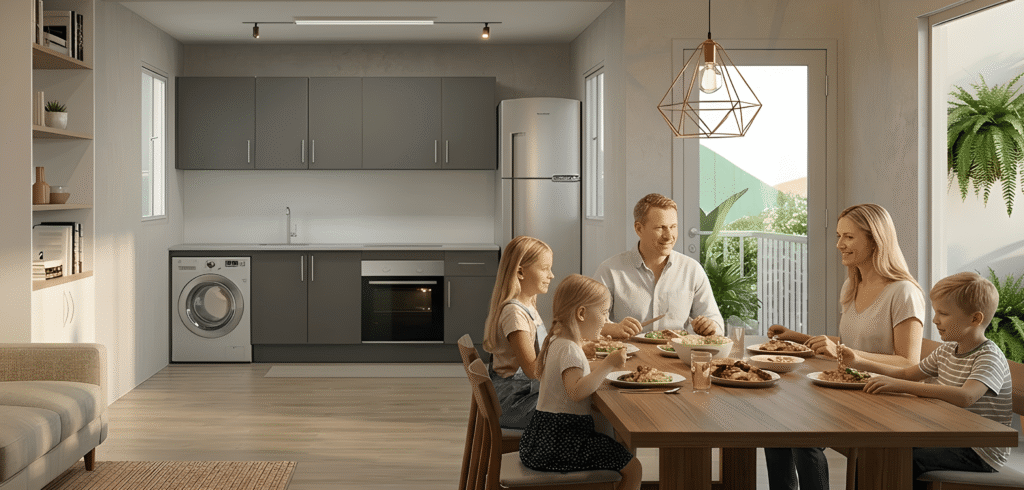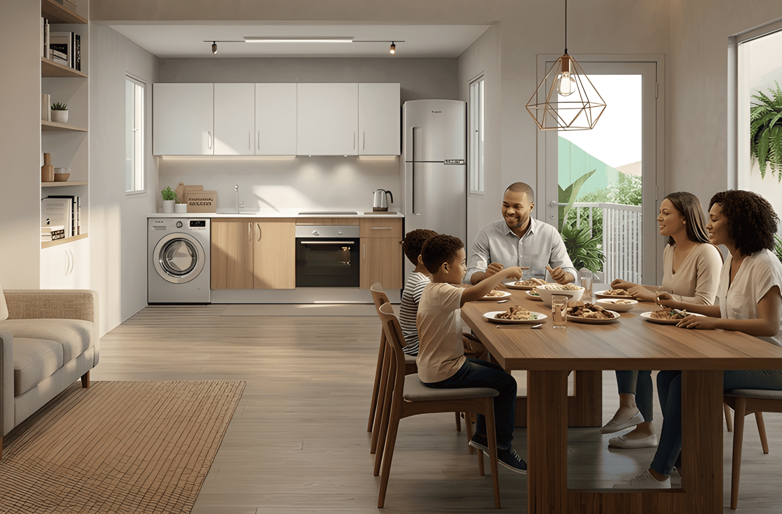 Nuestras cocinas están diseñadas para mucho más que cocinar: crean espacios donde compartir, disfrutar y vivir mejor. Gracias a su diseño moderno y funcional, aprovechan cada rincón con muebles bien organizados, electrodomésticos integrados y una distribución cómoda que facilita el día a día. La combinación de tonos claros, acabados de calidad y una iluminación natural cuidada aporta amplitud, calidez y elegancia, convirtiendo tu cocina en el corazón del hogar, perfecta tanto para preparar tus comidas como para compartir momentos inolvidables en familia.